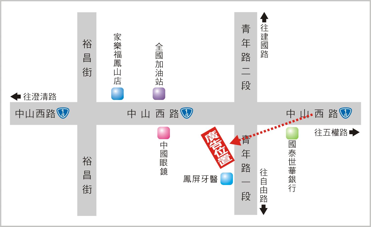 點位地址:高雄市鳳山區青年路一段 383 號 B 面 - 中山西路口往澄清路與自由路收視