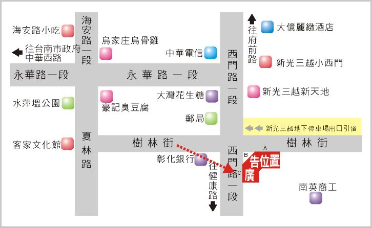 點位地址:台南市中西區西門路一段 578 號 C 面-新光三越新天地旁