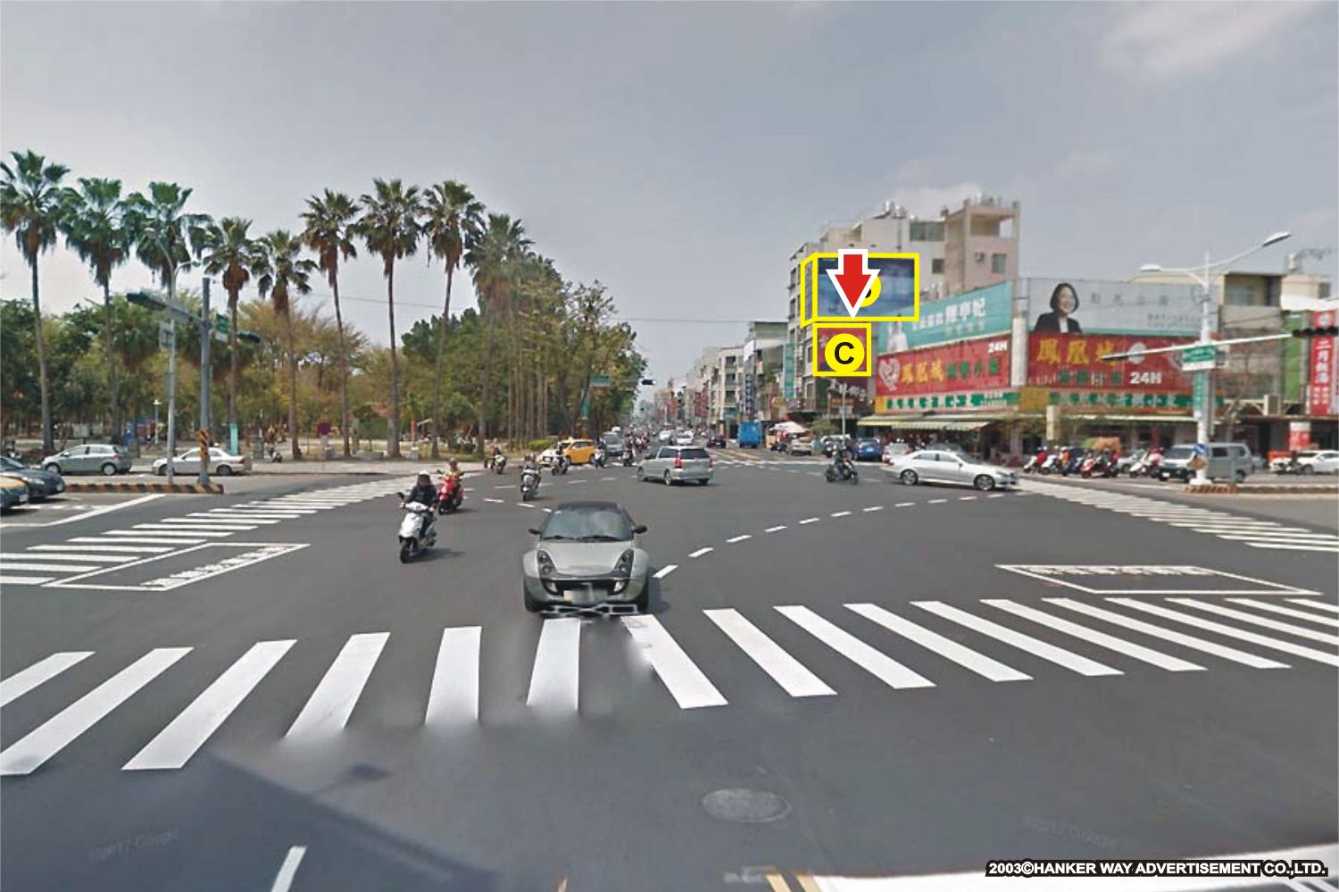 版面位於永華路與海安路口往台南市政府方向收視,此路段為連接中華西路、西門路的主要道路之一,腹地為中華電信、新光三越新天地及大億麗緻酒店,交通流量及往來車潮、人潮都相當頻繁,其廣告版面位置醒目,凡行經該路段之人車皆能清楚收視,是戶外定點廣告投資的絕佳地段。